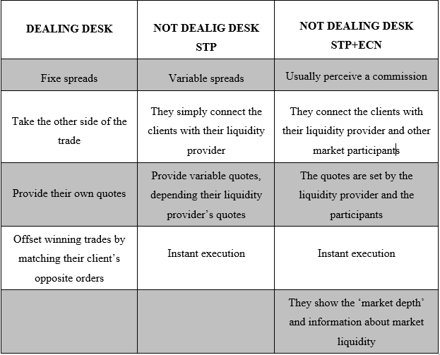 2. Not Dealing Desks do not process trades in their own system as Market Makers. They are simple ‘bridges’ between market participants. For their work they perceive a commission and / or increase the spread.